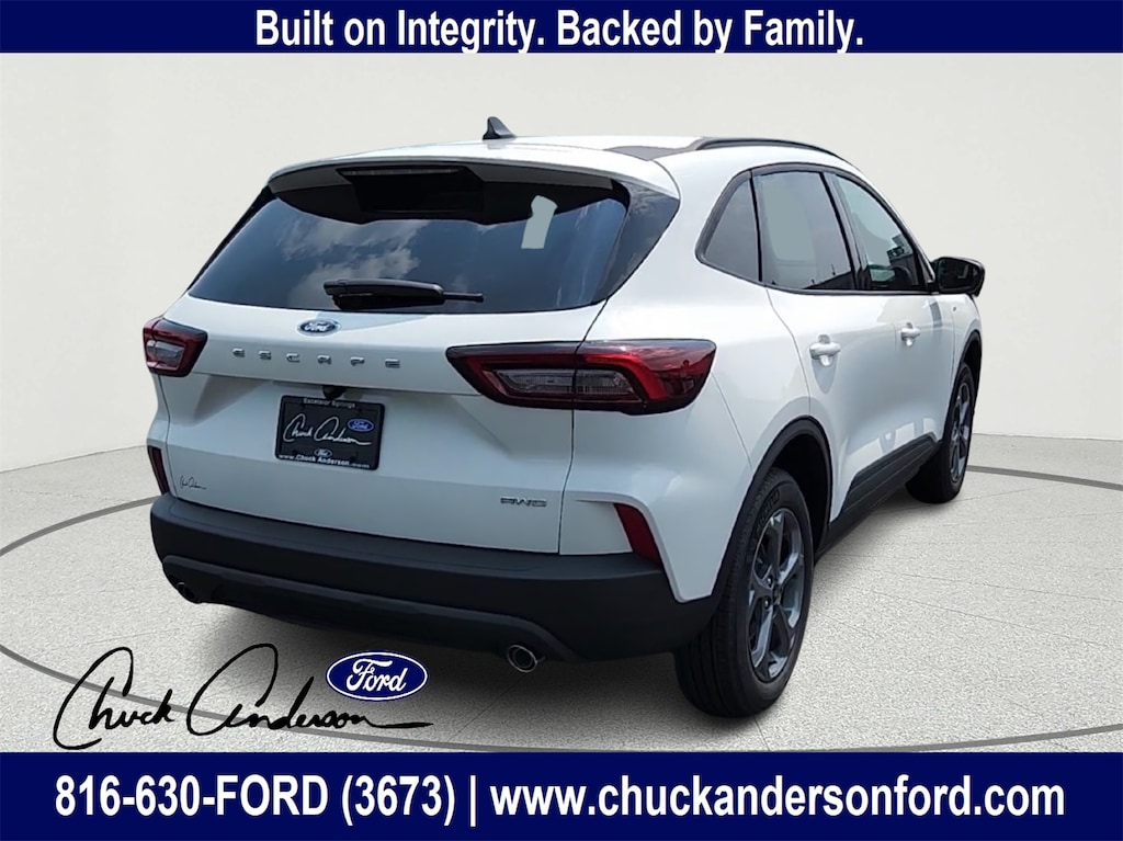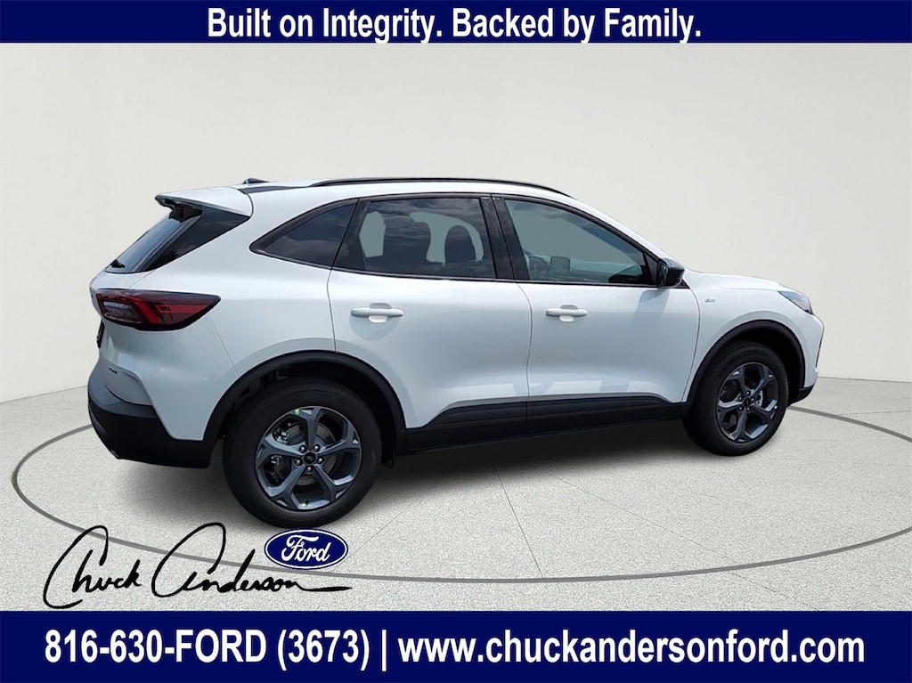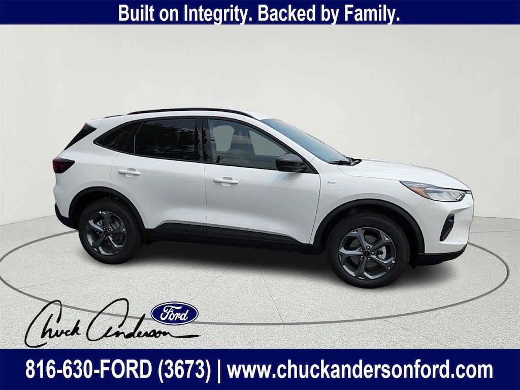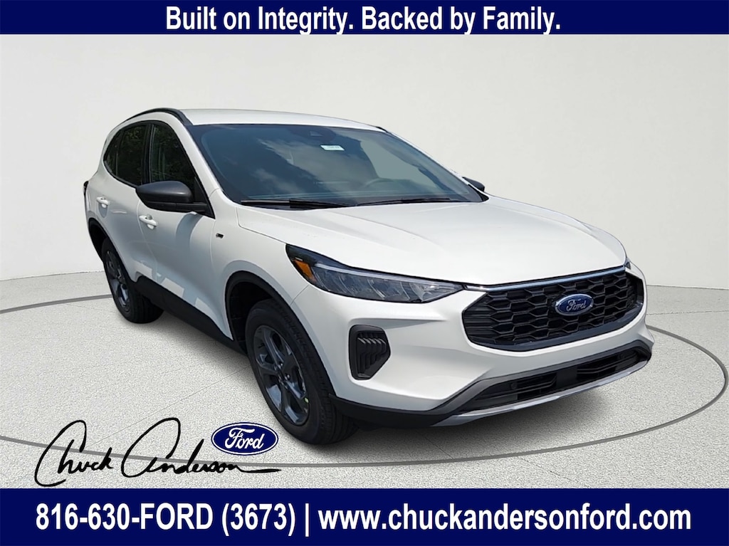 Discover the perfect combination of sporty design, confident performance, and modern technology in the 2025 Ford Escape ST-Line AWD, now available at Chuck Anderson Ford in Excelsior Springs, Missouri. Dressed in striking Star White Metallic Tri-Coat, this Escape delivers a refined look with rugged versatility ideal for drivers in Kansas City, Liberty, Lawson, and Kearney who want comfort, capability, and fuel efficiency in one dynamic SUV.